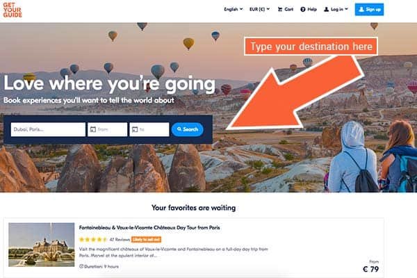 Tutto quello che devi fare è scrivi la tua destinazione o attrazione preferita e le date nella barra di ricerca e avrai tutte le attività e le escursioni a portata di mano.