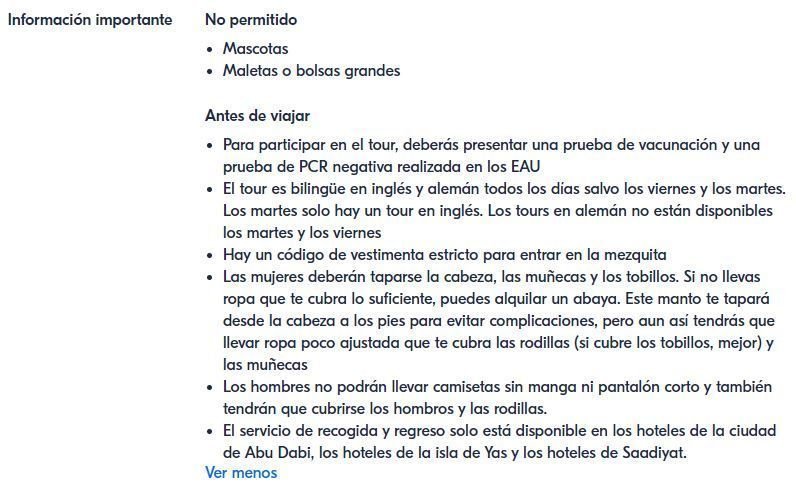 Esempio Informazioni importanti e da tenere in considerazione Tour Ottieni la tua guida alla Moschea Sheikh Zayed ad Abu Dhabi: